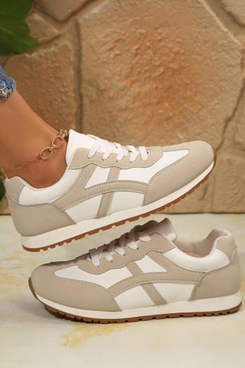 Oatmeal Contrast Lace Up Round Toe Sneakers | Women Sneakers